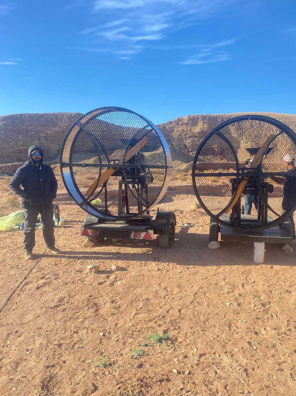 Réalisée pour les besoins du tournage, cette machine à vent est montée sur un châssis transportable et peut être déplacée facilement avec un véhicule. Son intensité est réglable, permettant de produire aussi bien une brise légère qu’un vent puissant, selon les effets recherchés. Une solution idéale pour créer des ambiances réalistes sur les plateaux de cinéma.